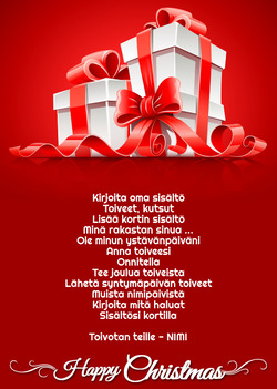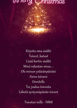Jaanalle T:Pia M Sydämessä pienessäkin asuu joulun taika. Pysähdy siis Sinäkin, nyt on juhlan aika.
